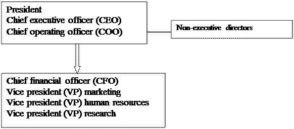 In the USA, the top position may be that of chairman, chairwoman or president. This job is often combined with the position of chief executive officer (CEO). Some companies have chief operating officer to take care of the day-to-day running of the company. The finance director may be called the chief financial officer. In the US, senior managers in charge of particular areas are often called vice presidents (VPs).