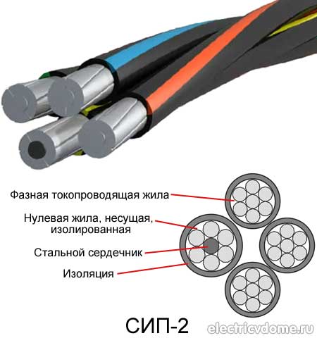 #2. Провода с маркировкой СИП-2 и СИП-2А имеют аналогичную с предыдущими марками конструкцию, за исключением изоляции, которая состоит из «сшитого» полиэтилена. Подобные марки получили применение в монтаже линий электропередач напряжением до 1000 В, которые подвержены воздействиям атмосферных факторов.