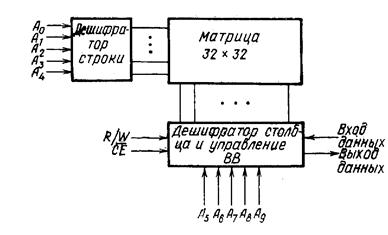 Рис.3.5. Блок-схема типичного статического ЗУПВ 1Кх1