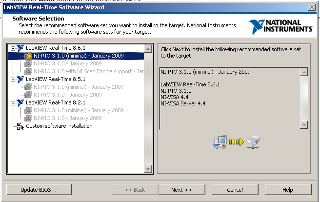 Рис. 5 Окно списка контроллеров Выберите NI-RIO 3.1.0 (minimal) – January 2009 и нажмите Next, откроется окно: