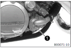 | Предупреждение Опасность получения ожогов Во время эксплуатации мотоцикла охлаждающая жидкость нагревается до чрезвычайно высокой температуры и находится под высоким давлением. – Запрещено снимать крышку радиатора, отсоединять шланги радиатора или снимать другие элементы системы охлаждения при прогретом двигателе. Дождаться остывания двигателя и элементов системы охлаждения. При получении ожога немедленно промыть пораженный участок теплой водой. |