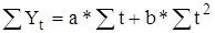 где Y – исходные уровни ряда; n – число членов ряда; t – время. Для упрощения вычислений показателям времени t придают такие значения, чтобы их сумма была равна нулю ( - если ряд содержит четное число членов