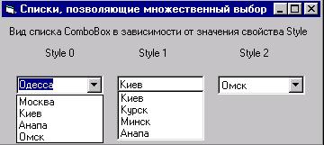 Рисунок. 8.1. Стили оформления списка типа ComboBox