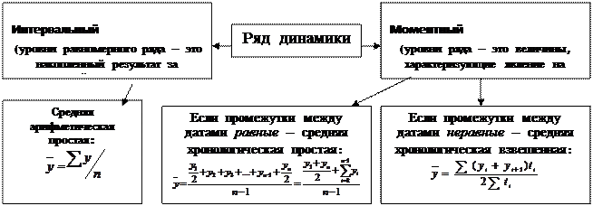 Рис.3. Методы расчета среднего уровня ряда динамики.