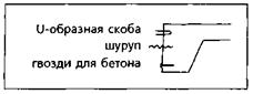 Деревянная планка (предпочтительнее толстая фанерная), временно присоединенная к опалубке (с обратной стороны — с длинными гвоздями для жесткого соединения с бетоном) служит для крепления сетки под штукатурку и строительного войлока. Другие варианты крепления показаны ниже.