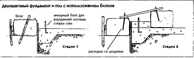 Короткий кусок ленты или бандажа (полимер или металл) в фундаменте для последующего крепления внешней системы стягивания стены. Требуется защита от острых углов Кусок трубки или шланга в фундаменте могут быть использованы для более поздней установки бандажей или кабеля.