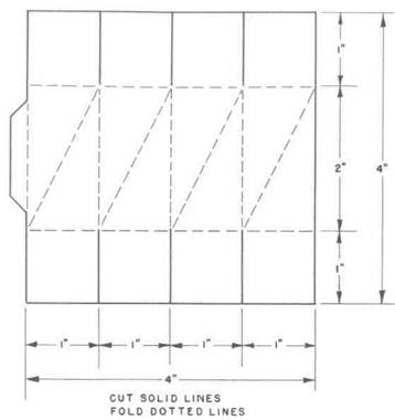 Figure 4-2A: Dimensioned template for cutting and folding a Flanagan "pyramid psychotronic generator" from a sheet of paper. with a degree in physics from Duke University. Campbell was interested in everything in the Universe, including things that were unexplained by science such as some of the machines described in this book. The Campbell The Energy Wheel version of the energy wheel utilized a folded paper rotor similar to the one fully described below as the experimental device of this chapter. The author's experiences with the Campbell energy wheel in 1955-1956 were mixed. Sometimes I could get it to work. Other times, I could not. The reactions of my friends and colleagues working in the rocket and guided missile area at White Sands missile testing range were also mixed. Therefore, I didn't pay much attention to this device again until Tag Powell gave me one of his energy wheels in 1980 (Fig. 4-3). I discovered I could cup my hands around the device and make it spin in both directions, stop, and reverse directions with great reliability and repeatability. During a visit to my home by Tag Powell in 1983, we spent most of a day conducting various experiments with the energy wheel. The one we used is shown in Figure 4-3. If you don't want to make an energy wheel, you can buy the one shown. It's commercially available from Powell Productions, 11701 Belcher Road South, Suite 123, Largo, Florida 34643-5117. We discovered that both of us could make it work equally well if we placed it under an inverted water glass, thereby shielding it from any air currents, including subconsciously-directed breathing, that might cause it to change its motion. But it would not work as well if placed under an inverted drinking container made of clear
