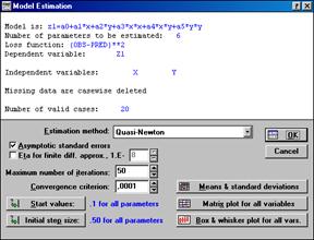 Из окна User-Specified Regression Function щелчком по кнопке Ок вызывается диалоговое окно Model Estimation.