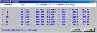 Кнопка Ок предназначена для вывода окна Parameter Estimation с результатами итераций по оценке искомого коэффициента и сообщения о недостаточной сходимости процесса вычислений по используемым критериям.