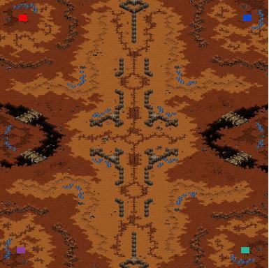 Размер: 128х128 – большая Количество игроков: 4 Тип карты: материковая Тип входа на мейн: широкий вход Количество ресурсов: много Рельеф: сложный Пейзаж: desert (пустыня) Разновидности: как есть
