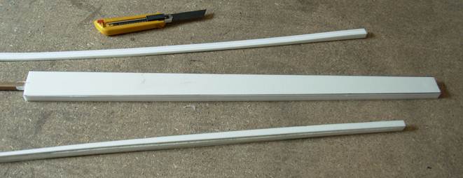 Меняем лезвие в ноже на новое и обрезаем с помощью длинной линейки точно по разметка, стараясь одним резом прорезать заготовку насквозь и удерживать лезвие ножа перпендикулярно поверхности заготовки.