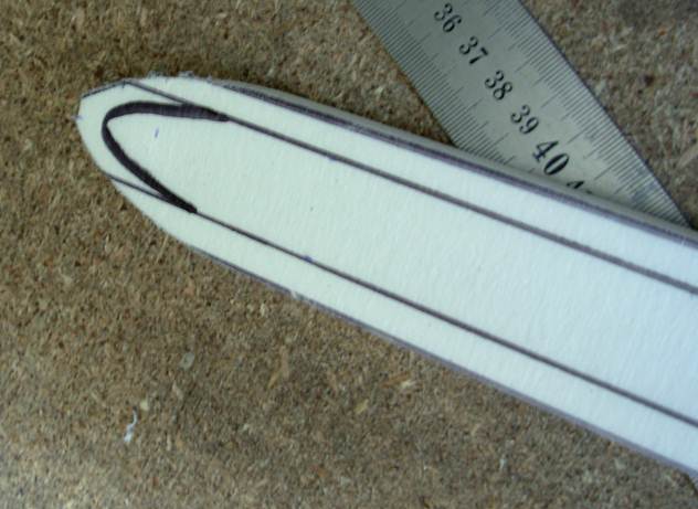 Размечаем кончик клинка согласно схеме