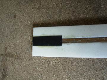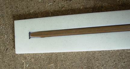 Намазываем боковые плоскости прута и паз изнутри клеем и даём чёть подсохнуть. Потом наносим на прут второй слой клея и приклеиваем его внутрь паза.