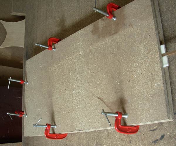 Оставляем на 10-15 минут, периодически прижимая руками пытающиеся изогнуться полосы. Как только клей схватится так, что они перестанут двигаться друг относительно друга, ставим под пресс.