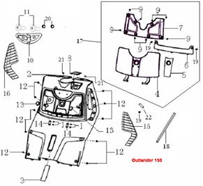 Снимите подседельный багажник вместе с сиденьем. Отвинтите винты (болты) крепления облицовочных щитков в зависимости от модификации МотоТС.