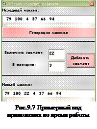 Задание 4. Добавление элементов в массив. Постановка задачи. Разработать приложение, которое позволяет включить элемент в заданную позицию массива. Массив заполнить случайными целыми числами в диапазоне от 0 до 100. Примерный вид работающего приложения представлен на Рис.9.7.