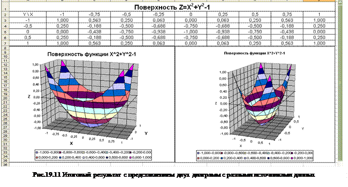 17. Постройте вторую диаграмму данной поверхности, но в качестве источника данных укажите данные в столбцах. Примерный результат представлен на рис.19.11.