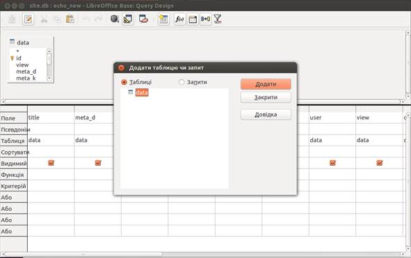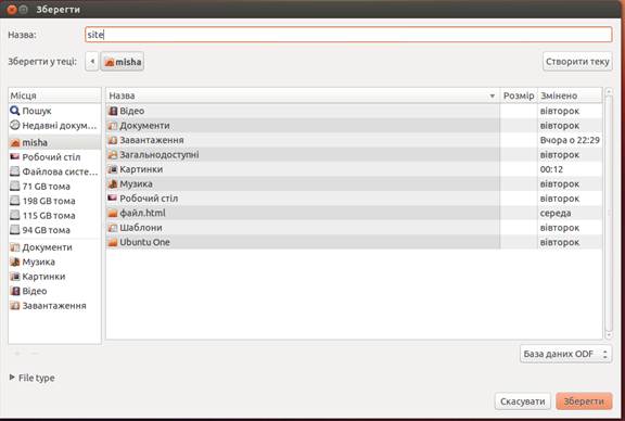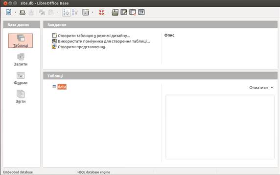 Створення бази даних в Libreoffice base