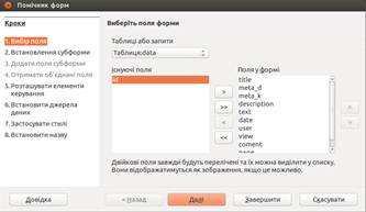 Аналогічно з створенням форми, обираємо поля, які потрібно вивести, та клікаємо кнопку «Завершити». Бачимо отриманий звіт.