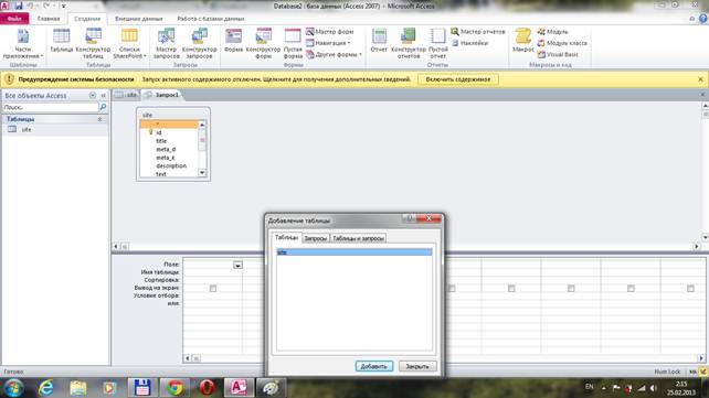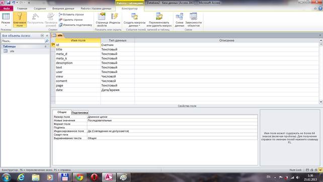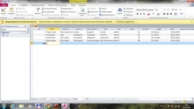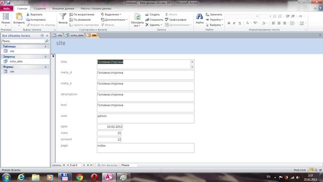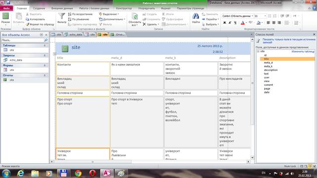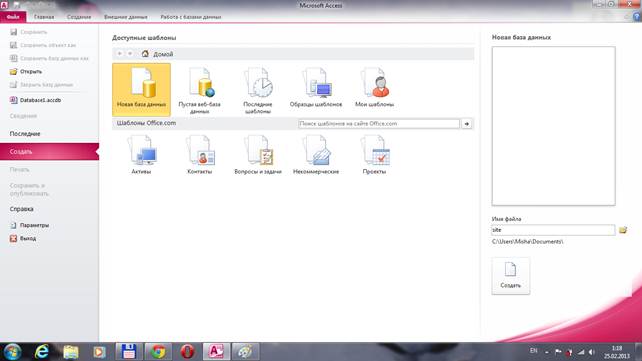 2.1 Відкриваємо Microsoft Office Access 2010, створюємо базу даниз з назвою site.