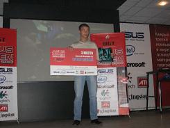 Name: Вахтанг Закиев Country: Россия Race: Терран На фотографии EX в оранжевой футболке. Также очень сильный и стабильный старкрафтер, участник практически всех WCG, где стабильно занимал места не ниже 5. Игрок с отличным микро и макро контролем. Рядом кстати стоит Bruce также очень сильный питерский старкрафтер.