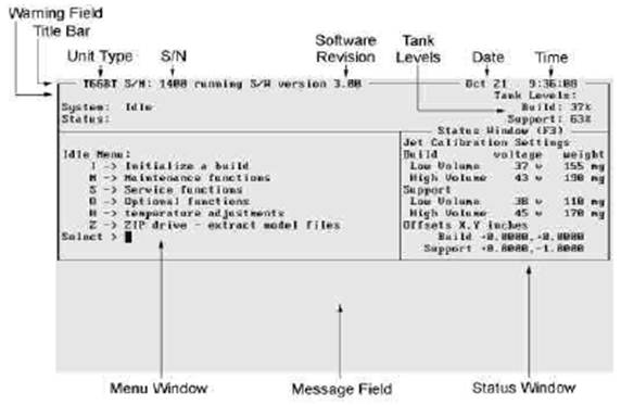 Menu Window (окно меню) – Окно меню - разделенная на части область экрана отчасти снизу с левой стороны монитора. Она перечисляет варианты управляющих команд оператора, доступных при текущем состоянии системы и определяет нажатие клавиш, связанных с каждой командной функцией. См.гл.2.2