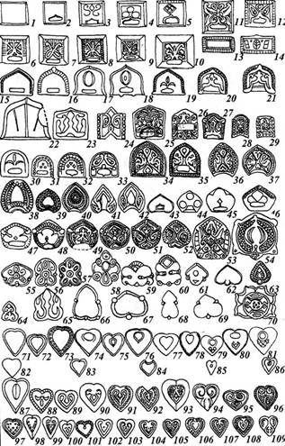 Кроме этого, производилась обработка металлов давлением. Это рубка, прошивка, насечка, гибка, клёпка, чеканка, штамповка на матрицах. Найдены соответствующие инструменты и изделия. Интересны в этом плане литые ажурные матрицы, которые позволяли чеканить из листа повторяющиеся металлические накладки (Рис.6)[7]. Получалось очень красиво, аккуратно и производительно. Их найдено огромное множество (Рис.7)[8].