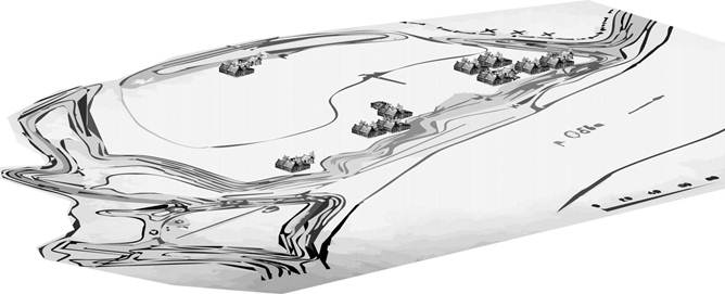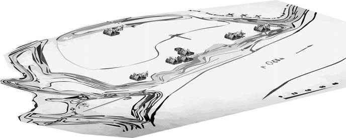 Всё, что мы реконструируем далее, носит вероятностный характер. Город мог иметь то или иное взаимное расположение построек и несколько отличный их внешний вид. Однако, потребность в этом несомненно есть. Обязательно следует дополнить реконструкцию домашними хозяйствами всех работников, которые были задействованы в найденных производствах. Металлургическое и литейное производство требовало, минимум, 4 работников. Добавляем вокруг него соответствующие домашние хозяйства. И вот в районе 1-го и 5-го раскопов у нас появился «городок металлургов». Гончарная и сыродутная плавильная мастерские соответствуют нашим расчётам. Две мастерские мы не можем привязать к конкретному производству, не знаем численность работников, и не должны, соответственно, дополнять домашними хозяйствами. Таким образом, мы получили реконструкцию второго уровня достоверности (Рис.11), дополненную сведениями о необходимых строениях для обслуживающего персонала найденных производств.