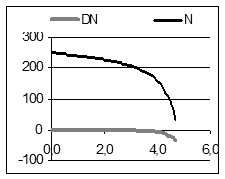 Рис. 4.16(в) Зверніть увагу, на графіках видно, що функція N=N (t) монотонно спадає від 180 до 0, а функція Δ N =Δ N (t) – монотонно спадає від 0 до-50. Таким чином, у результаті дослідження ми встановили, що при N 0 = N 1 = 200 особин рівновага системи (популяції) виявляється нестійкою. Вправа. Виконайте самостійно аналогічні експерименти для другої точки (N 0 = N 2) і переконайтеся в тому, що при N 0 = N 2 = 300 особин рівновага системи стійка. Висновки 1. За будь-яких прийнятних значень параметра с (при 0< c < сmах) стійка рівновага популяції забезпечується тільки для N з інтервалу N гр ≥ N ≥ N гр/2 (спадна гілка параболи на рис. 4.9). Для інших значень N рівновага є нестійкою, тобто, якщо за непередбачених обставин виявиться, що N ≤ N гр/2, то система перейде в нестійкий стан. 2. Допустимі значення абсолютної швидкості відлову (абсолютної квоти) можуть бути якими завгодно, аби вони не перевищували сmах = p 2/4 q. 3. Якщо абсолютна квота виявиться більшою за сmах, то це завжди вестиме до невідворотної загибелі популяції. Будь-які намагання максимізувати прибуток (кількість вилученої біомаси) небезпечні – популяція може увійти в нестійкий стан і загинути. 4. Рис. 4.17 відтворює всі етапи обчислювального експерименту і, таким чином, є їх узагальнюючим підсумком.