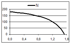 Рис. 4.12 Припустимо тепер, що за непередбачених обставин чисельність популяції зменшується на 50. Покладемо N 0 = 250 – 50 = 200 особин. і знову розглянемо таблицю й відповідний графік (рис. 4.13). Виявляється, що при цьому через деякий час популяція гине.