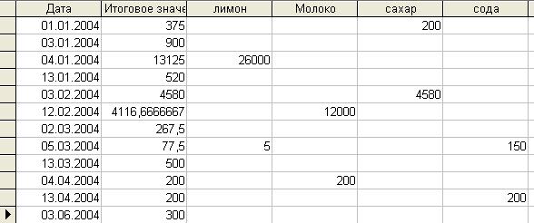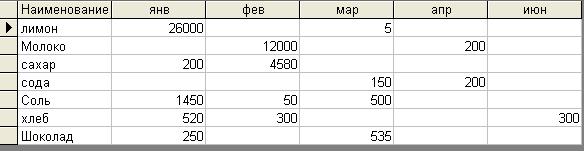 9. Создайте перекрестный запрос на основе запроса Товар по датам. В результате выполнения запроса на экране должна появляться информации о сумме товара, проданного за каждый месяц. Скройте пустые столбцы и столбец Итоговых значений. После правильного выполнения данного пункта должна получиться результирующая таблица следующего вида