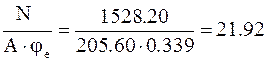 Розкос решітки конструюємо із поодиноких кутиків, необхідна площа перерізу яких при орієнтовному значенні λ0=100 (φ=0,542) складає: