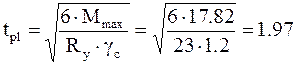де γс=1,2 (табл. 6 [1]), Ry=230 МПа для сталі С255 товщиною 20...40мм. Приймаємо товщину плити tpl=20 мм із листа товщиною 22 мм (2 мм на фрезерування). Висоту траверс визначаємо з умови розміщення зварних швів для прикріплення їх до вітки колони (в запас міцності вважаємо, що зусилля N з вітки колони передається на плиту тільки через траверси). Мінімально необхідний катет швів при чотирьох швах:
