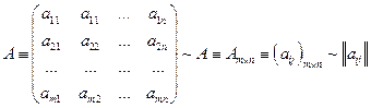 Матрицы. Определение, умножение матриц на число и сложение их, умножение матриц, ранг матрицы и его нахождение путем элементарных преобразований, вычисление обратной матрицы по формулам и методом исключения. Матрицы – это прямоугольные таблицы элементов (чисел, функций) из m строк и n строк. m, n – порядки матрицы, они определяют размерность матрицы Обозначение: