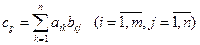 3. Умножение матрицы на матрицу (перемножение матриц) Произведением м-ы Аm´n на м-цу Вn´p называется матрица Сm´p: Обозначение: (Строка i матрицы А умножается на столбец j матрицы В в смысле скалярного произведения) Свойства: 1° (АВ)С=А(ВС) (ассоциативность) 2° А(В+С) = АВ+АС (А+В)С = АС+ВС (дистрибутивность) Док-во через сравнение размерностей прав и лев частей. ЗАМ: Произведения АВ и ВА определены и имеют одну и туже размерность лишь тогда, когда, А и В – квадратные матрицы одного и того же порядка. Для таких матриц можно исследовать коммутативность. Вообще говоря, коммутативность не выполняется АВ Если D = Dn – диагональная матрица, то Минором k-ого (Mk) (где k≤{m,n}) порядка м-цы Аm Число r, обладающий св-вами 1 и 2 наз-ют рангом м-цы А. При этом Mr наз-ют базисным минором, строки и столбцы, образующие минор сами наз-ся базисными. Ранг матрицы – max порядок отличных от 0 миноров r(A)=rang(A). Из Т. о базисном миноре (базисные строки (столбцы) линейно независимы; любая строка (столбец) представляется в вилле линейной комбинации базисных строк) следует, что ранг матрицы есть max число линейно независимых строк или столбцов.