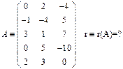 Находят ранг несколькими способами: 1. методом элементарных преобразований. Используют тот факт, что элементарные преобразования матрицы не меняют ее ранг. Элементарные преобразования: - перестановка любых двух строк (столбцов) - умножение любой строки (столбца) на любое число, не равного 0 - умножение любой строки (столбца) на любое число и прибавление полученного результата к любой строке (столбцу) Используя элементарные преобразования, приводят матрицу к треугольному виду, более того можно привести к диагональному виду. Пр-р: