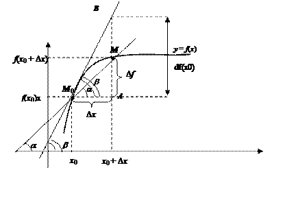 Определение: Проведем секущую к графику функции Из треугольника М0МА следует, что угол С геометрической точки зрения, производная Можно показать, что функция является дифференцируемой тогда и только тогда, когда ее приращение представимо в виде: