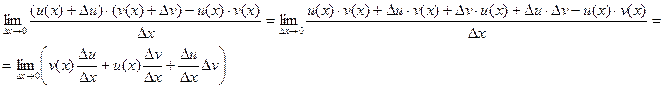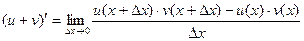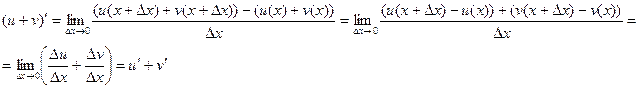 Если каждый из этих пределов существует и конечен: Теорема: если функции u(x) и v(x) являются дифференцируемыми в точке х, то функция u(x)+v(x) также является дифференцируемой в этой точке и справедливо равенство
