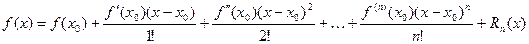 Формула Тейлора: пусть функция f(x) имеет производные до порядка (n+1) включительно в окрестности точки x0, тогда справедлива формула Тейлора: