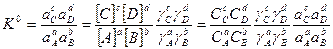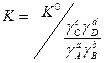 Зная К° и умея оценить степень отклонения от идеальности (т.е. имея данные для расчета γ и а), можно рассчитать реальную константу, которая в отличие от К ° зависит не только от р и Т, но и от I, а именно: