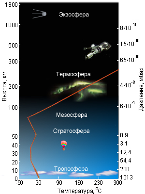 Атмосфера Земли состоит из ряда слоев – тропосферы, стратосферы, мезосферы, термосферы, экзосферы: