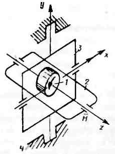 Например, на рис. 2 вектор момента внешних сил Му направлен по оси у внешней рамы. Согласно свойству (2) гироскопа его ось z будет прецессировать вокруг оси внутренней рамы х с угловой скоростью wx. При этом вектор кинетического момента гироскопа Н стремится совпасть с вектором М по кратчайшему пути. H = ΩI — кинетический момент ротора гироскопа; где, Ω и I — угловая скорость собственного вращения и момент инерции гироскопа. Для определения направления прецессии пользуются, например, правилом полюсов. Полюсом гироскопа является тот конец его главной оси, со стороны которого вращение наблюдается происходящим против часовой стрелки. Полюсом силы называется тот конец оси гироскопа, со стороны которого действие приложенной к нему внешней силы кажется происходящим против часовой стрелки. Правило полюсов формулируется следующим образом: при приложении к гироскопу момента внешней силы полюс гироскопа кратчайшим путём стремится к полюсу силы.