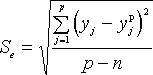 Для всей совокупности наблюдаемых значений рассчитывается средняя квадратическая ошибка уравнения регрессии Se, которая представляет собой среднее квадратическое отклонение фактических значений yj, относительно значений, рассчитанных по уравнению регрессии yjр (4):