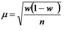 р – бас жиынтықтағы берілген белгіге ие бірліктер үлесі. W – іріктелген жиынтықтағы берілген белгіге ие бірліктер үлесі. (1-w) – іріктелген жиынтықтағы берілген белгіге ие емес бірліктер үлесі. w(1-w) – іріктеудегі дисперсия үлесі.