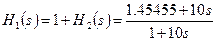 В соответствии с заданием способ намотки обмоток трансформатора таков, что ёмкость вторичной обмотки связана с ёмкостью первичной обмотки соотношением C 5 = C 3/ k T2. Рассчитываем C 5 = 64 пФ = 0.064 нФ. Способ намотки обмоток трансформатора таков, что сопротивление вторичной обмотки связано с сопротивлением первичной обмотки соотношением R 5 = R 4/ k T. Рассчитываем R 5 = 8 Ом = 0.008 кОм. Функциональной электрической схеме, изображённой на рис. 1, соответствует структурная схема динамической системы, изображённая на рис. 2. Здесь обозначено: H 1(s) – передаточная функция усилительного каскада (DA1, R 1, R 2, C 2) по неинвертирующему входу; H 2(s) – передаточная функция того же каскада по инвертирующему входу, она выполняет роль передаточной функции отрицательной обратной связи; H 3(s) – передаточная функция трансформатора; H 4(s) – передаточная функция усилительного каскада (DA2, R 6, C 6).