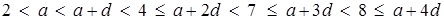 2) Пусть и – первый член и разность прогрессии. Если и лежат в одном и том же из двух промежутков и , то в нем лежит и . Но тогда третий член прогрессии также будет решением заданного неравенства. Противоречие. Значит,