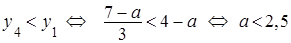 На интервале прямая лежит ниже прямых и , а прямая лежит выше прямых и ,