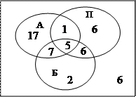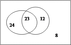 Решение. Решая эту задачу аналогично предыдущей, получим: 47+35+20-23-12-11+5=61. Используя обозначения, предложенные выше, получаем следующую формулу для трех свойств: N(а1или а2 или а3)= N(а1)+N(а2)+N(а3)-N(а1и а2) -N(а1и а3) -N(а2и а3) +N(а1и а2 и а3)