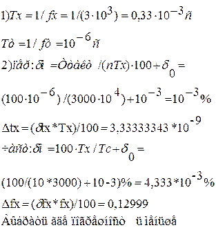 U=5B; n=14 битов; (АЦП поразрядного типа) ∆комп= ±1мВ; ∂нап= ±0,01%; ∂ЦАП= 0,01%; Решение Т.к. АЦП поразрядного типа, то ∆(квантования)= q, но в данной задаче не дано Umax. Дано только ∂ЦАП= 0,01%, которая в своей очереди влияет на ∆(квантования), поэтому берём только ∂ЦАП. (Но для уточнения, нужно спросить преподавателя). ∆нап= ∂нап*5/100 = 5*10-4В; ∆ЦАП= ∂ЦАП*5/100 = 5*10-4B; ∆комп= ±1мВ; ∆= ∆нап + ∆ЦАП + ∆комп= 5*10-4 + 5*10-4 + 10-3 = 2*10-3; Ответ: (5000±2)*10-3В; ∂=∆*100/5 = 0,04%;