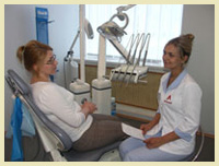 При работе "в четыре руки" врач-стоматолог располагается